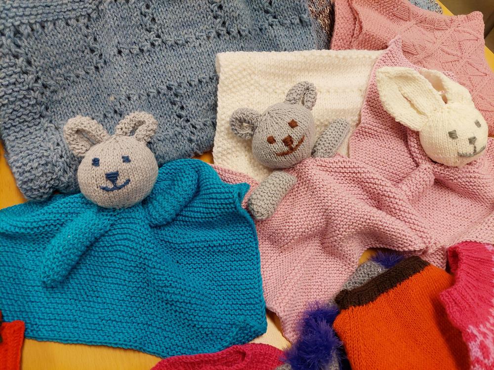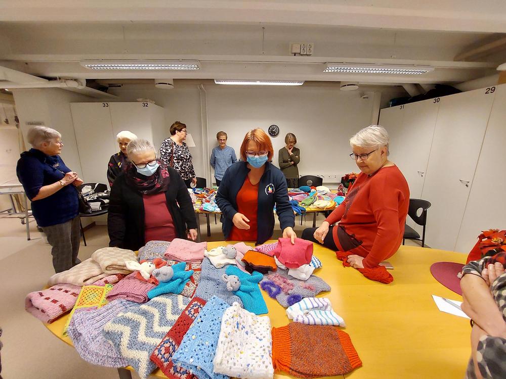 Tilaisuuteen sapui vieraita Lahden ensi- ja turvakodista ja he myös noutivat upeita kerhon tekemiä neuleita; sukkia, pipoja, peitoja jne....