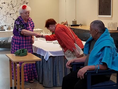 Tarjoilu: Yhdistys tarjosi jäsenille kakkukahvit. Seuraavana esiintyi Näytelmäryhmä Pätkis; Hoitajan valinta