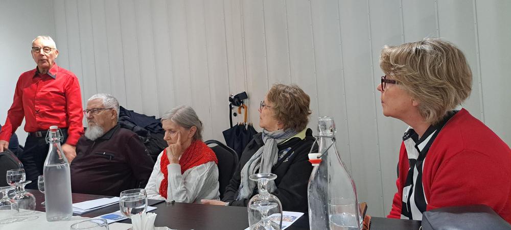 Vasemmalta: Ulla pohtii syvällisesti maailman menoa, Anitako puhuu käsillään, Anne Vuorinen (hallitus, varapuheenjohtaja) kuuntelee tarkkaavaisena