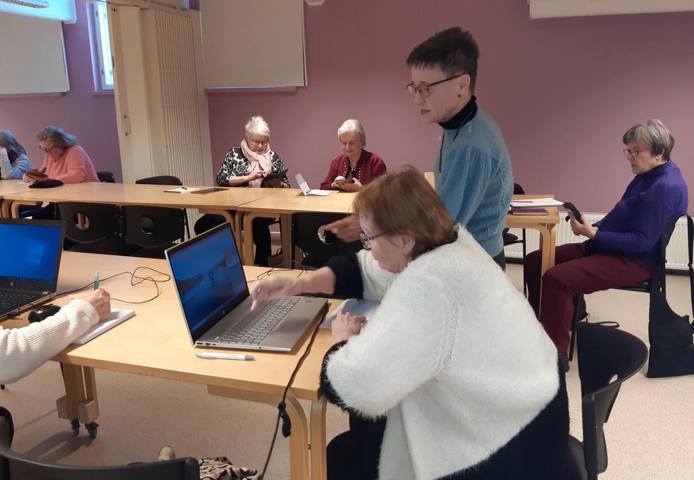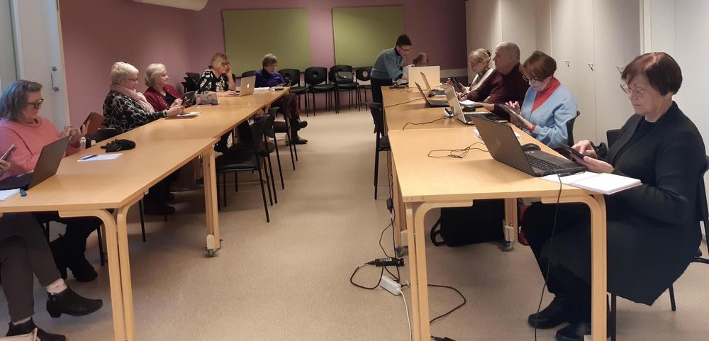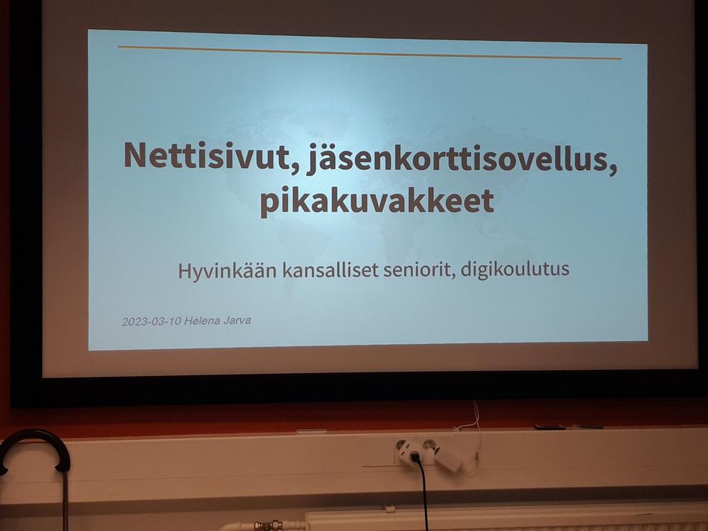 Hyvinkään senioreiden yhtenä painopisteenä tänä vuonna on digikoulutus. Kevään kuluessa pidetään viisi koulutustilaisuutta, joista ensimmäisen aiheena olivat nettisivut, jäsenkorttisovellus (mobiiliapplikaatio) sekä mobiililaitteen pikakuvakkeet. Avauspuheenvuorossaan Helena totesi, että paikalla olevat ensimmäiset koulutettavat ovat koekaniineja. Koulutusta kehitetään nyt saatavan kokemuksen perusteella.