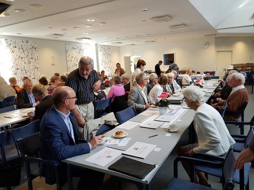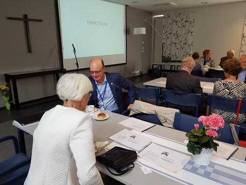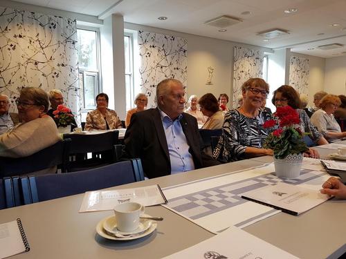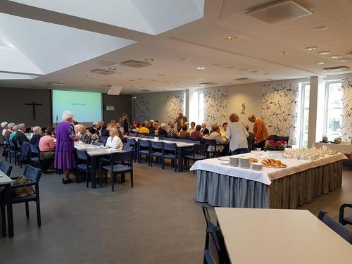 Tuula Karhunen esitteli vanhusviikon ohjelmaa ja kertoi seurakunta vaaleist sekä hiljentymispiiristä.