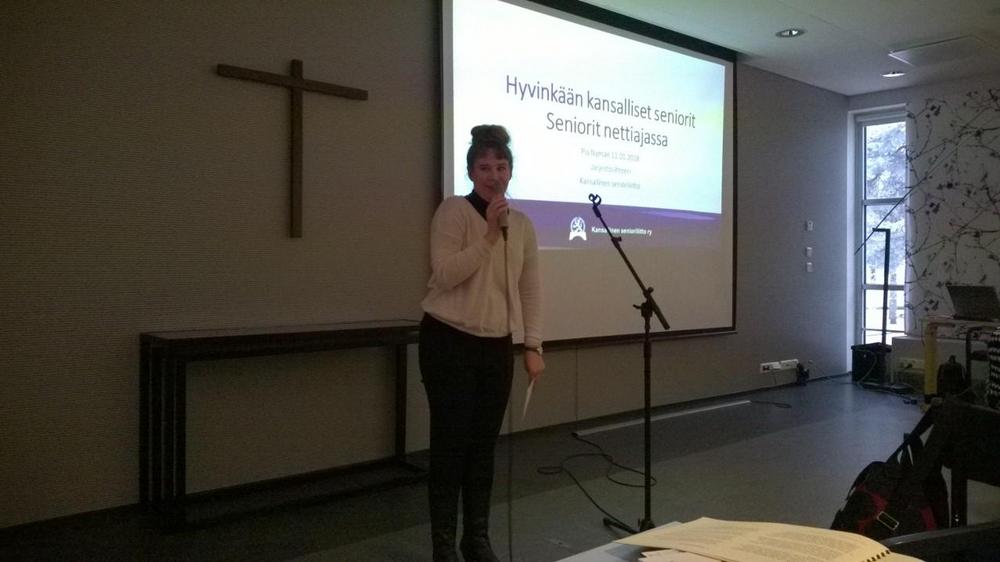 Senioriliiton järjestösihteeri Pia Nyman kertoin meille tulevista ohjelmista ja hyvästä koulutuksesta kaikille jäsenille.
