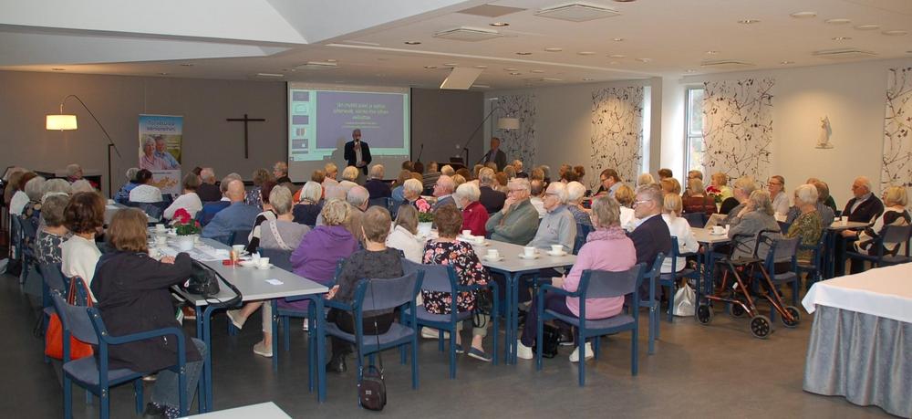 Kuukausitapaamisen 5.10. ohjelmassa oli musiikin ja arpajaisten lisäksi fysiatrian erikoislääkäri Timo Rousin esitys otsikolla: "Iän myötä askel ja ajatus lyhenee, voinko itse siihen vaikutta?".