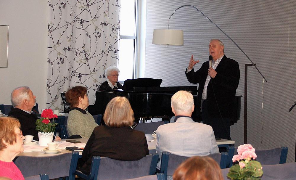 Senioriliiton puheenjohtaja Kari Kantalainen piti mielenkiintoisen luennon "Vanhustenhoito tienhaarassa - kestääkö yhteiskunnan hoivalupaus?"