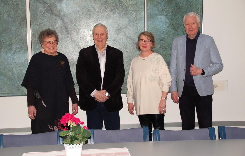 Hallituspotretti vasemmalta varapuheenjohtaja Lea Romppanen, Liiton puheenjohtaja Kari Kantalainen, Yhdistyksen puheenjohtaja Anne Vuorinen ja hallituksen jäsen Timo Harju