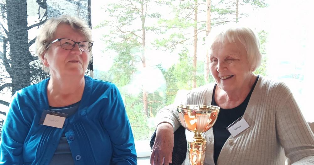 Lounaan jälkeen ampaistiin isännän laatimalle luontopolulle ratkomaan visaisia kysymyksiä. Sisällä oli lisäksi viisi täytettyä eläintä tunnistettavaksi. Yhteensä 15 kysymyksestä 12 oikein sai kahden hengen joukkue Anja Olkinuora ja Helena Arinperä, jotka ylpeänä vastaanottivat hienon palkintopokaalin.