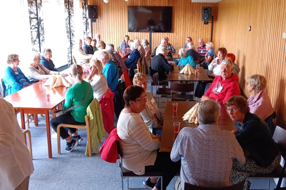 Viiden tunnin yhdessäolon päivä Solttilan näköalamajalla kokosi 41 senioria monipuolisen ohjelman pariin. Hanuristi Seppo Lankinen soitteli, säesti yhteislauluja ja viihdytti väkeä tarinoinnillaan ja vitseillään. Esimerkiksi: Mistä tietää onko kyseessä rakkausavioliitto vai järkiavioliitto? No, sen on pakko olla rakkausavioliitto, koska siinä ei ole mitään järkeä!
