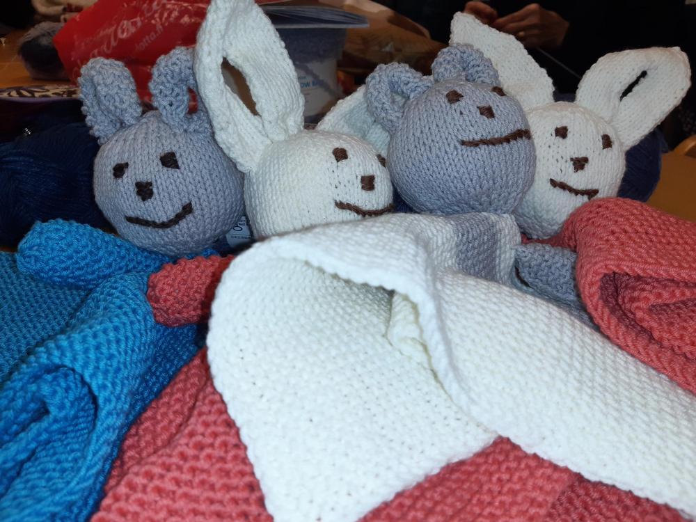 Tilaisuuteen sapui vieraita Lahden ensi- ja turvakodista ja he myös noutivat upeita kerhon tekemiä neuleita; sukkia, pipoja, peitoja jne....