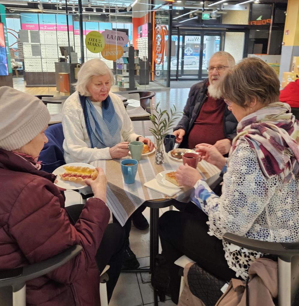 Noin tunnin kävelylenkin jälkeen piipahdamme omakustanteisilla kahveilla Laineen kahvilassa Willassa.